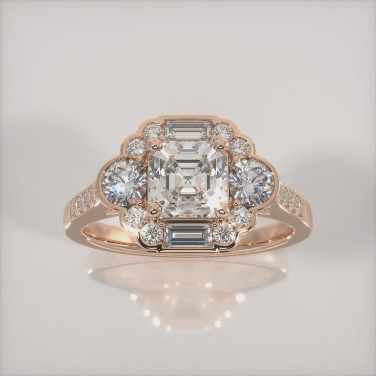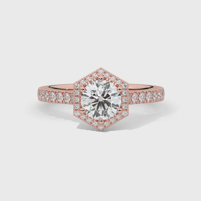 - 18ct Rose Gold Hexagon Halo Ring From £1,895.00 /