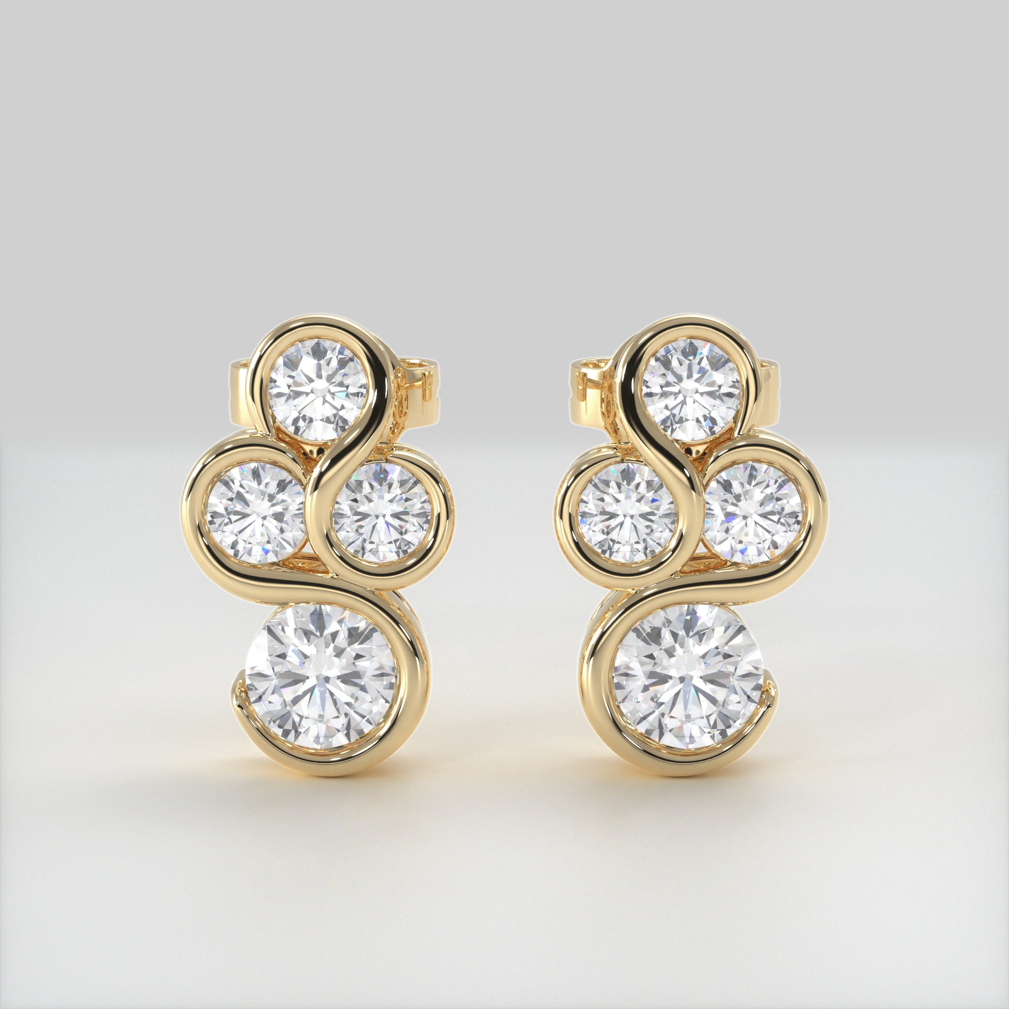 These curvaceous and elegant stud earrings are made up of a larger round brilliant diamond and three beautiful round brilliant stones. With a total carat weight of 0.95ct these glittering earrings are a unique addition to any jewellery lovers collections.