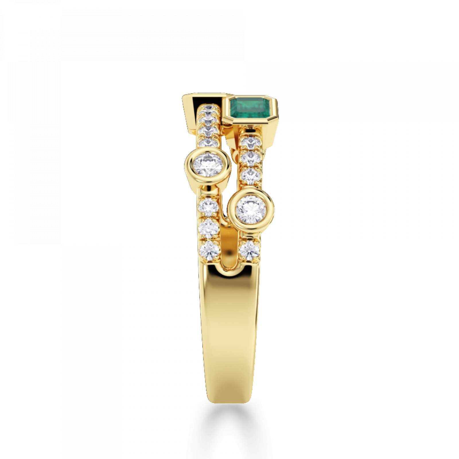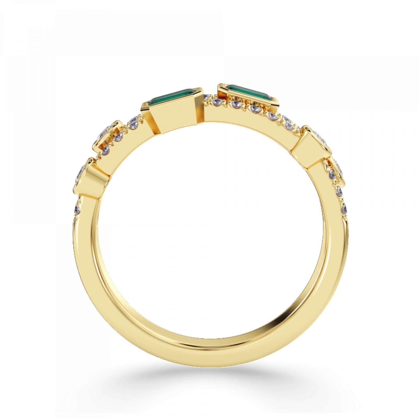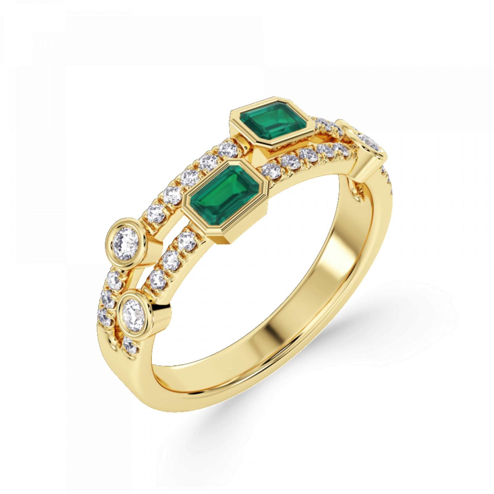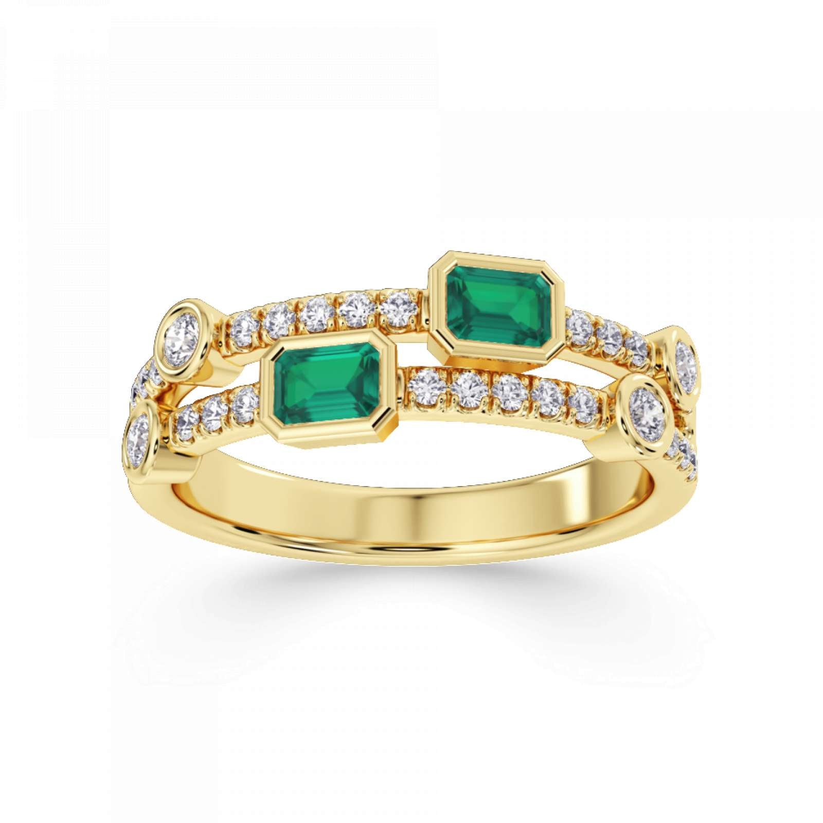 18ct Yellow Gold double band Emerald cut & Round Diamond and Emerald Dress Ring