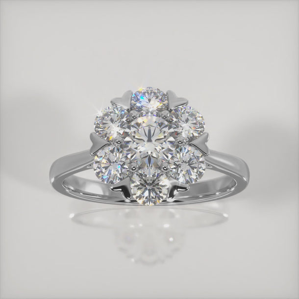 This stunning take on a classic floral cluster features delicate heart claws, encapsulating the stones perfectly. Featuring 0.90ct of Round Brilliant Diamonds it is the perfect addition to any jewellery collection.