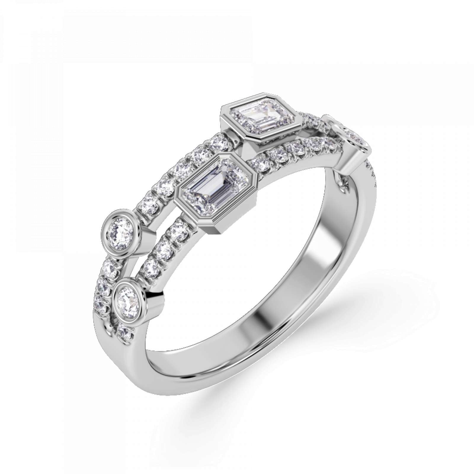 This stunning double band features two Emerald cut diamonds and four large round brilliants, set on a double pin set diamond band the total carat weight is 0.67ct. This gorgeous piece brings all the sparkle and elegance and would make the perfect gift for yourself or for someone you love.