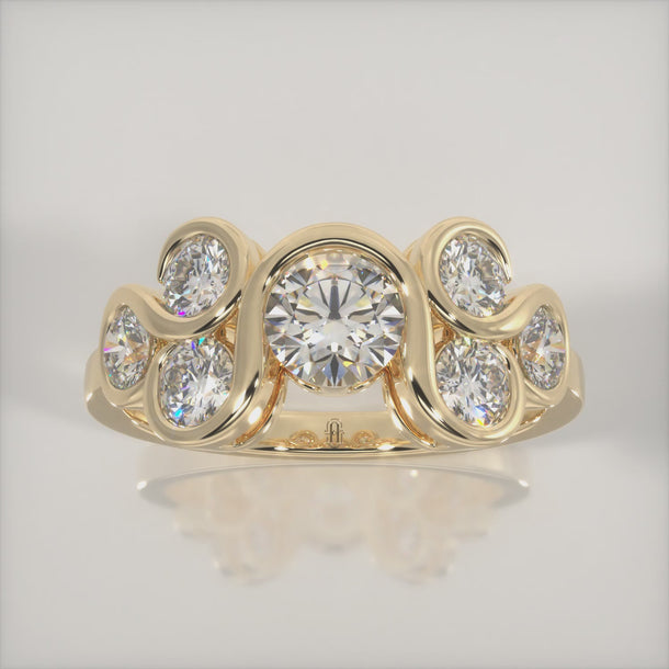 This curvaceous and elegant piece is made up of a larger round brilliant diamond and six beautiful round brilliant side stones. With a total carat weight of 0.95ct this glittering ring is a unique addition to any jewellery lover.