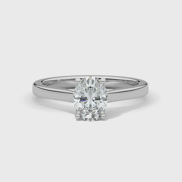 18ct White Gold Oval cut Diamond, set in a classic 4 claw setting with modern slim shank. The elegant open claws show this glittering stone of beautifully. A classic piece perfect for that special question.
