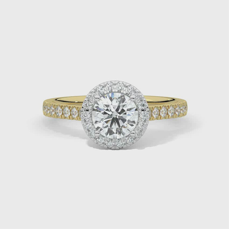 - 18ct Yellow Gold & Platinum Round Halo Ring From £1,895.00 /