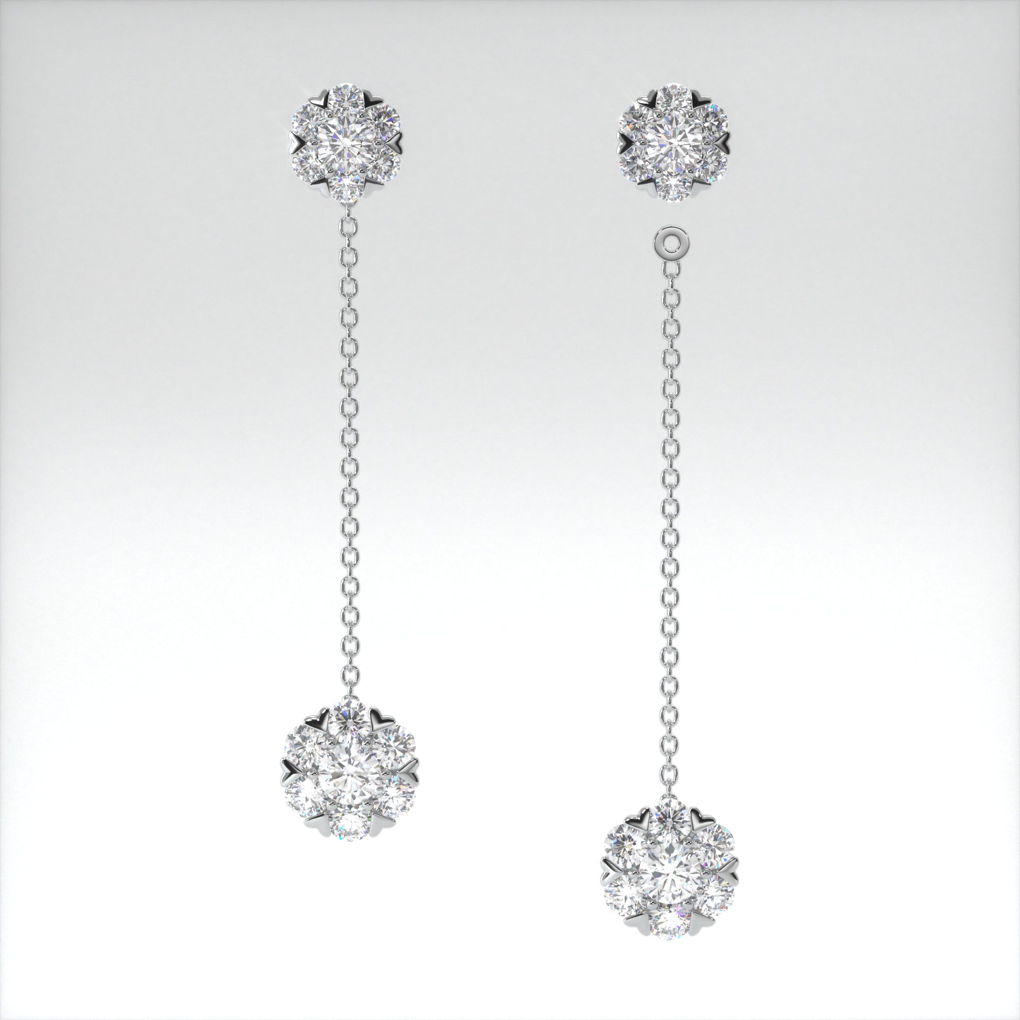 This stunning take on a classic floral cluster features delicate heart claws, encapsulating the stones perfectly. Featuring an incredible 2.80ct of Round Brilliant Diamonds these gorgeous are one of a kind. With the drop earring itself a clever adjuster, these earrings can be worn depending on your outfit and occasion. Have the studs alone, the drop attached in front of the lobe or attached the rear these versatile yet classic pieces are a must for any jewellery collection.