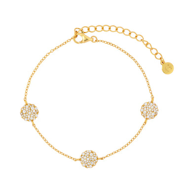 Sparkly, delicate and timeless, the Aurora Bracelet can be styled with any look. Wear it alone or layer it with your other favourite fine bracelets. Beautifully-crafted, featuring three evenly-spaced discs measuring 7mm wide, along a fine link chain measuring 16cm with 4xcm extention. Each disc features an array of super sparkly pavé-set cubic zirconia stones. Fastened with a lobster clasp and featuring an extension chain for versatility in length. Made in sterling Silver, 18ct Gold, this long lasting design is perfect for a jewellery collection.