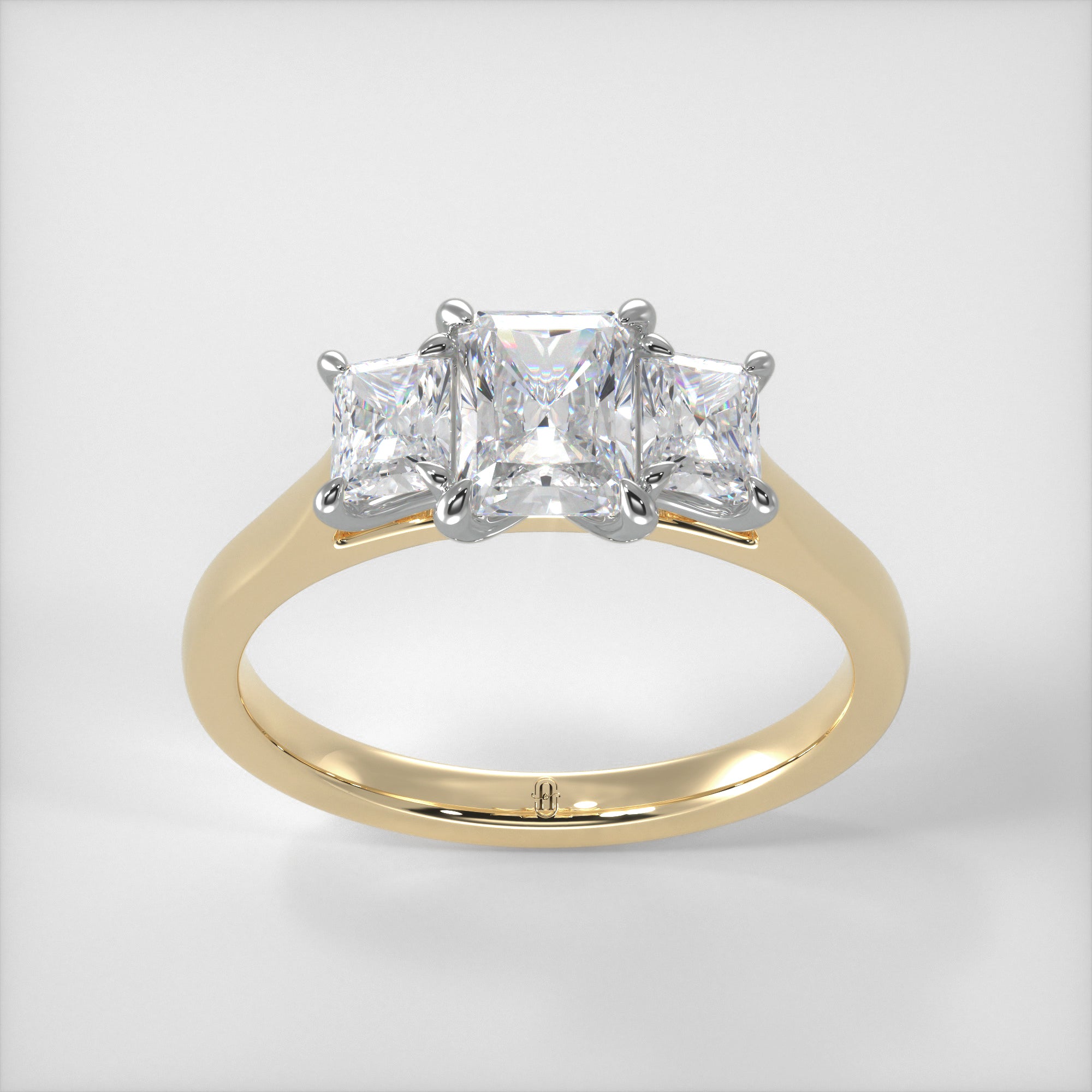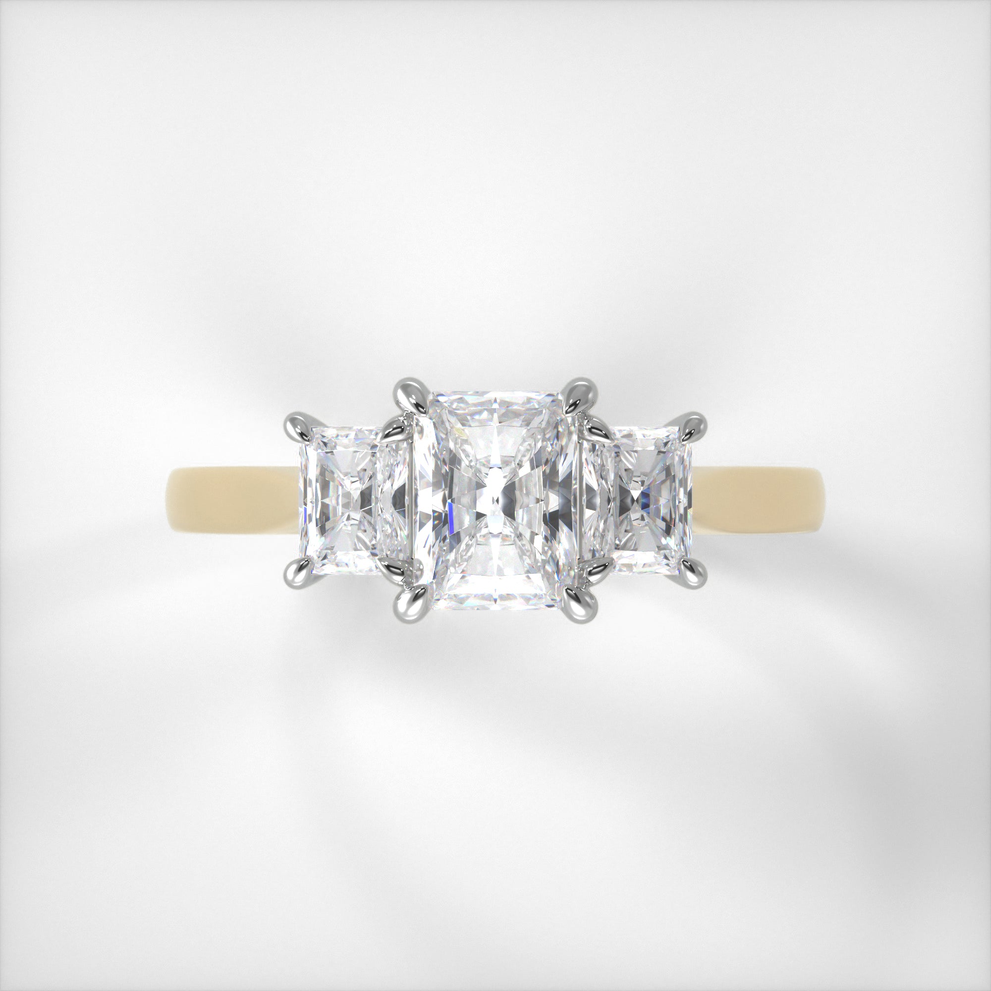A mixture of the brilliance of a round diamond and the architectural design of an emerald cut, the radiant is a truly beautiful stone. In our Elizabeth ring, three stunning diamond are set in a modern yet classic design allowing the light to flood into the stones setting them on fire with sparkle.