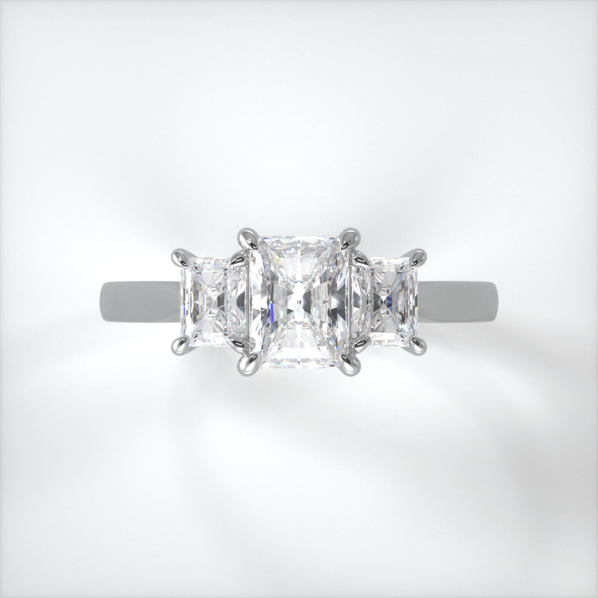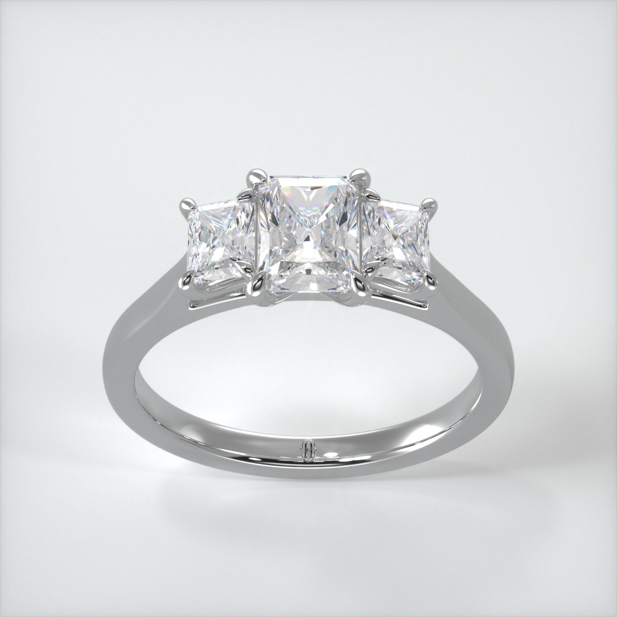 A mixture of the brilliance of a round diamond and the architectural design of an emerald cut, the radiant is a truly beautiful stone. In our Elizabeth ring, three stunning diamond are set in a modern yet classic design allowing the light to flood into the stones setting them on fire with sparkle.