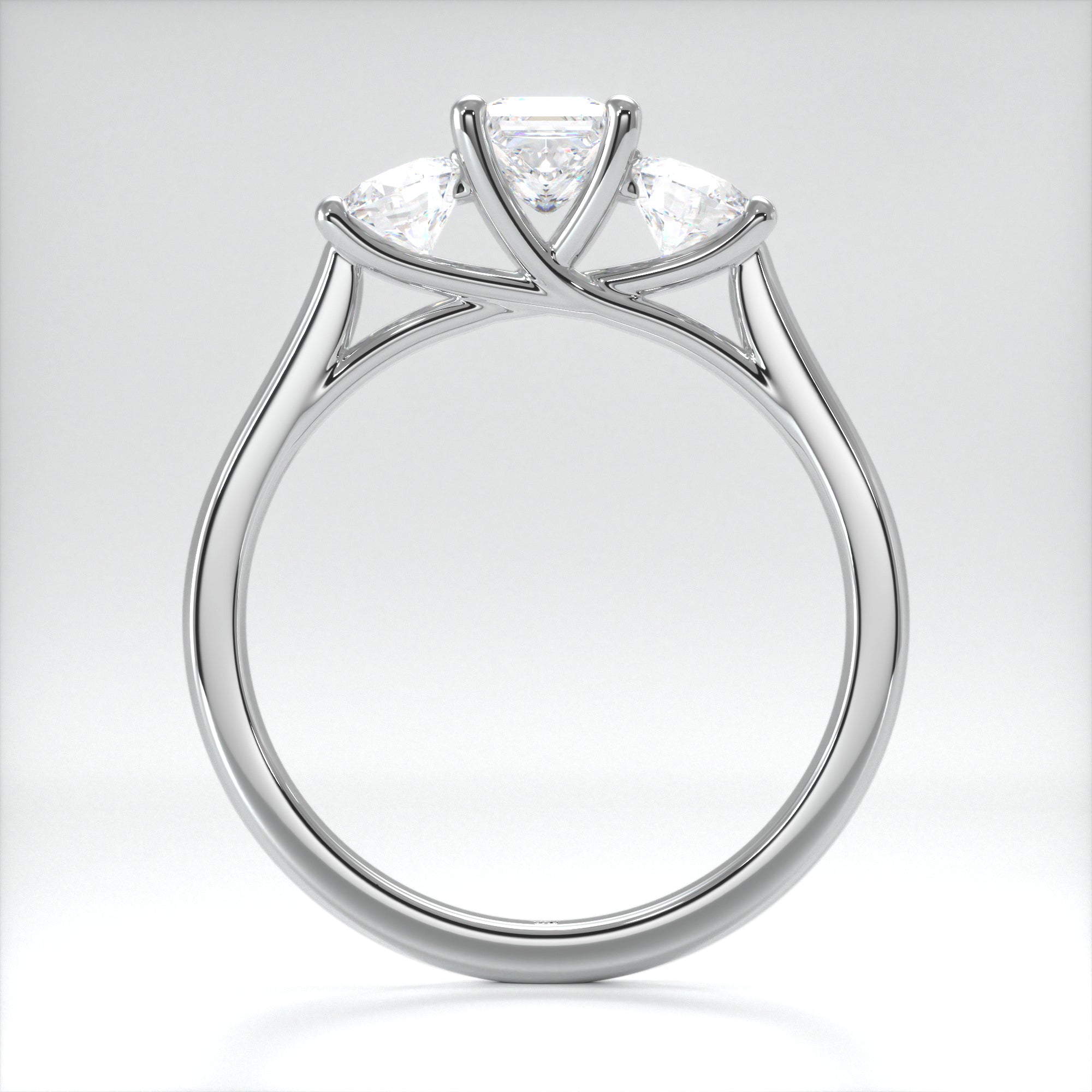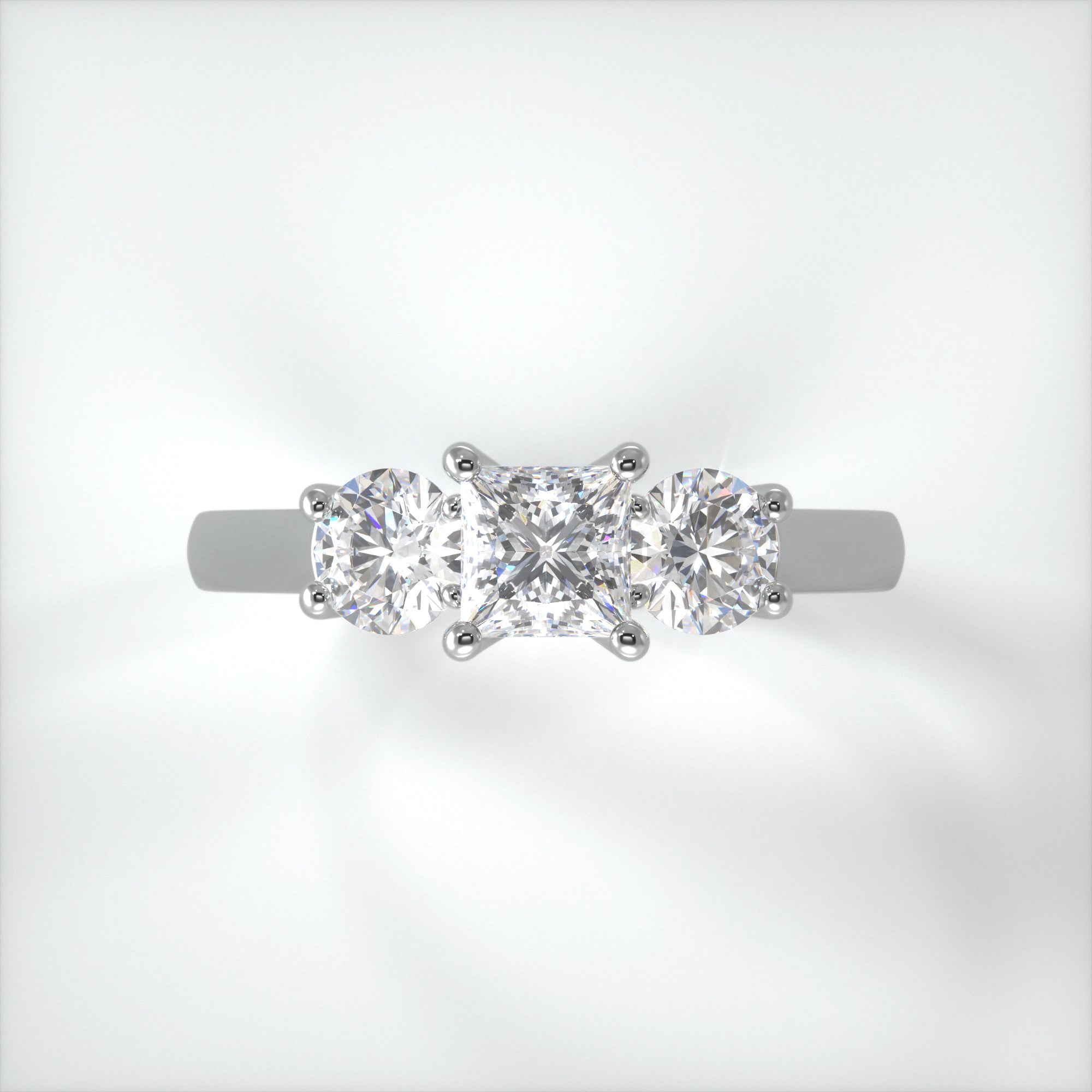 A classic trilogy, the Rachel ring features a prince cut diamond and two glittering round brilliant diamonds on either side. With a total carat weight of 1.00ct this piece will make a perfect engagement ring, or just a ring to say I love you.