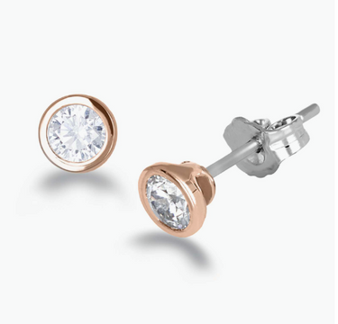 A classic pair of rubover set stud earrings. Crafted from 18ct Rose Gold with a platinum weight of 3.9 and a carat weight of 2.9g