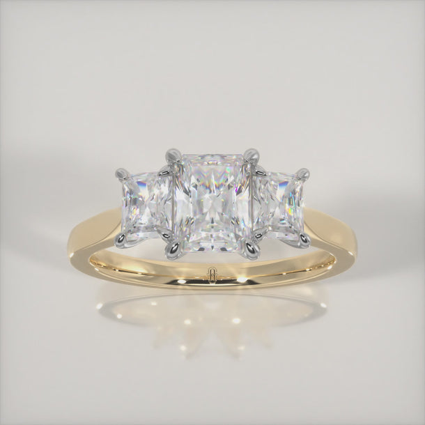 A mixture of the brilliance of a round diamond and the architectural design of an emerald cut, the radiant is a truly beautiful stone. In our Elizabeth ring, three stunning diamond are set in a modern yet classic design allowing the light to flood into the stones setting them on fire with sparkle.