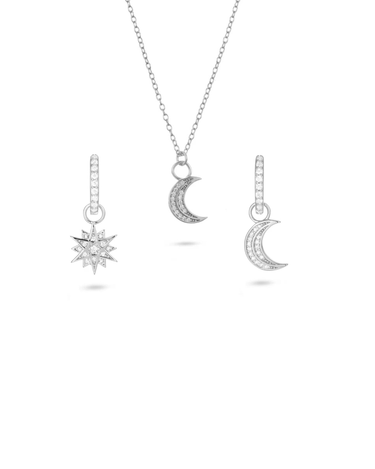 Sparkle beautifully wearing our Celestial Moon Necklace with our Celestial Star & Moon Huggie Hoops. Wear them together as a set of solo. These are made in hypoallergenic hallmarked 925 sterling silver with rhodium plating to stop tarnishing and scratching, this is made for a long lasting beautiful design.