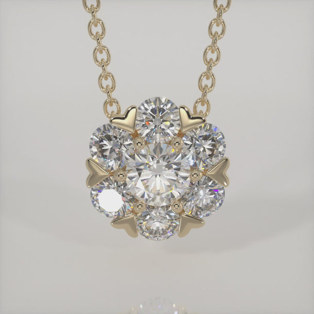 This stunning take on a classic floral cluster features delicate heart claws, encapsulating the stones perfectly. Featuring 0.90ct of Round Brilliant Diamonds and on a 16-18 inch adjustable trace chain, this pendant is gorgeous for a special occasion as well as dressing up your everyday.