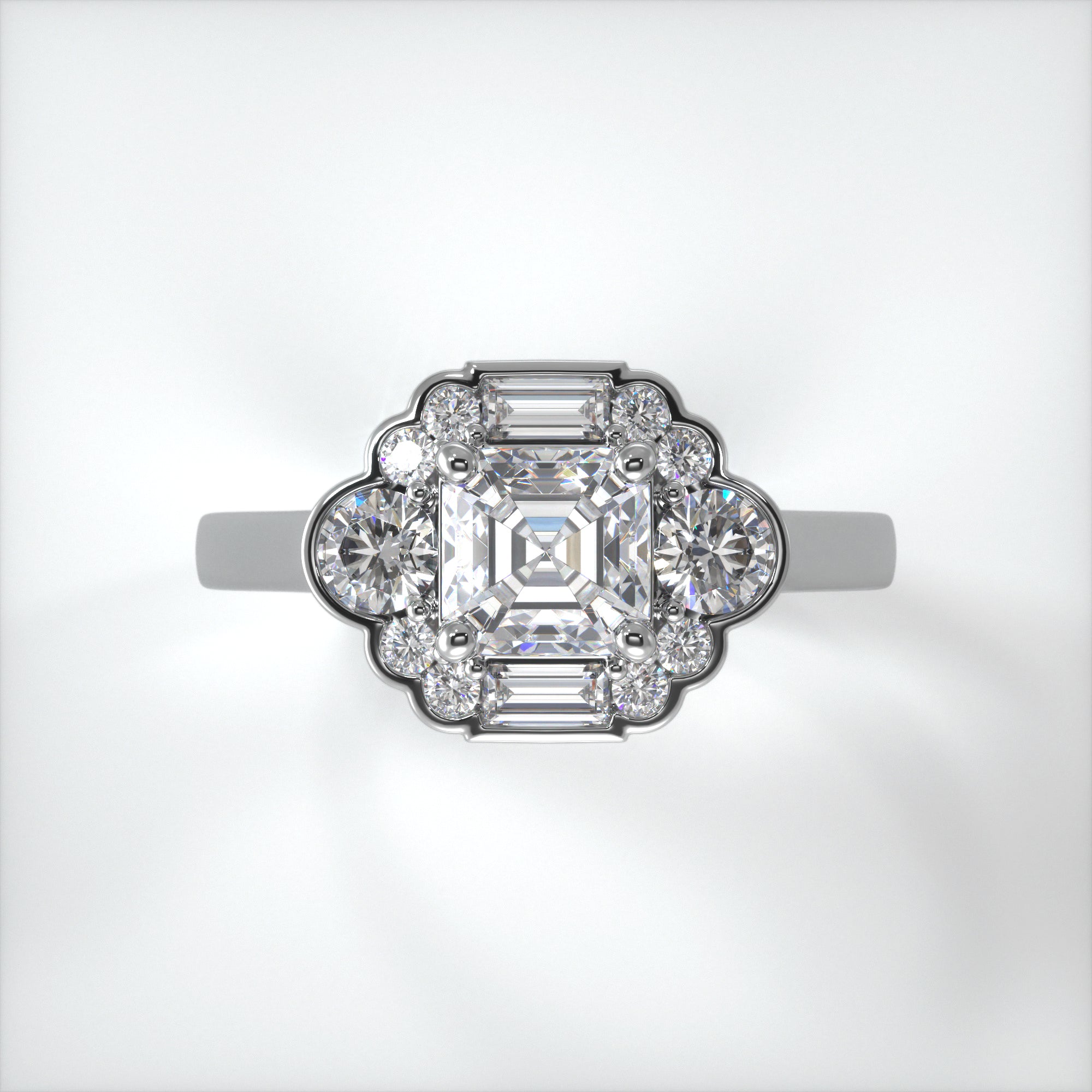 A dazzling ring with a beautiful Art Deco feel, the Tallulah is a favourite of the Alexandra Elizabeth team. Featuring an array of dazzling diamonds this piece has a total of 1.15ct made up of an Asscher, Baguettes and Round Brilliant Diamonds.